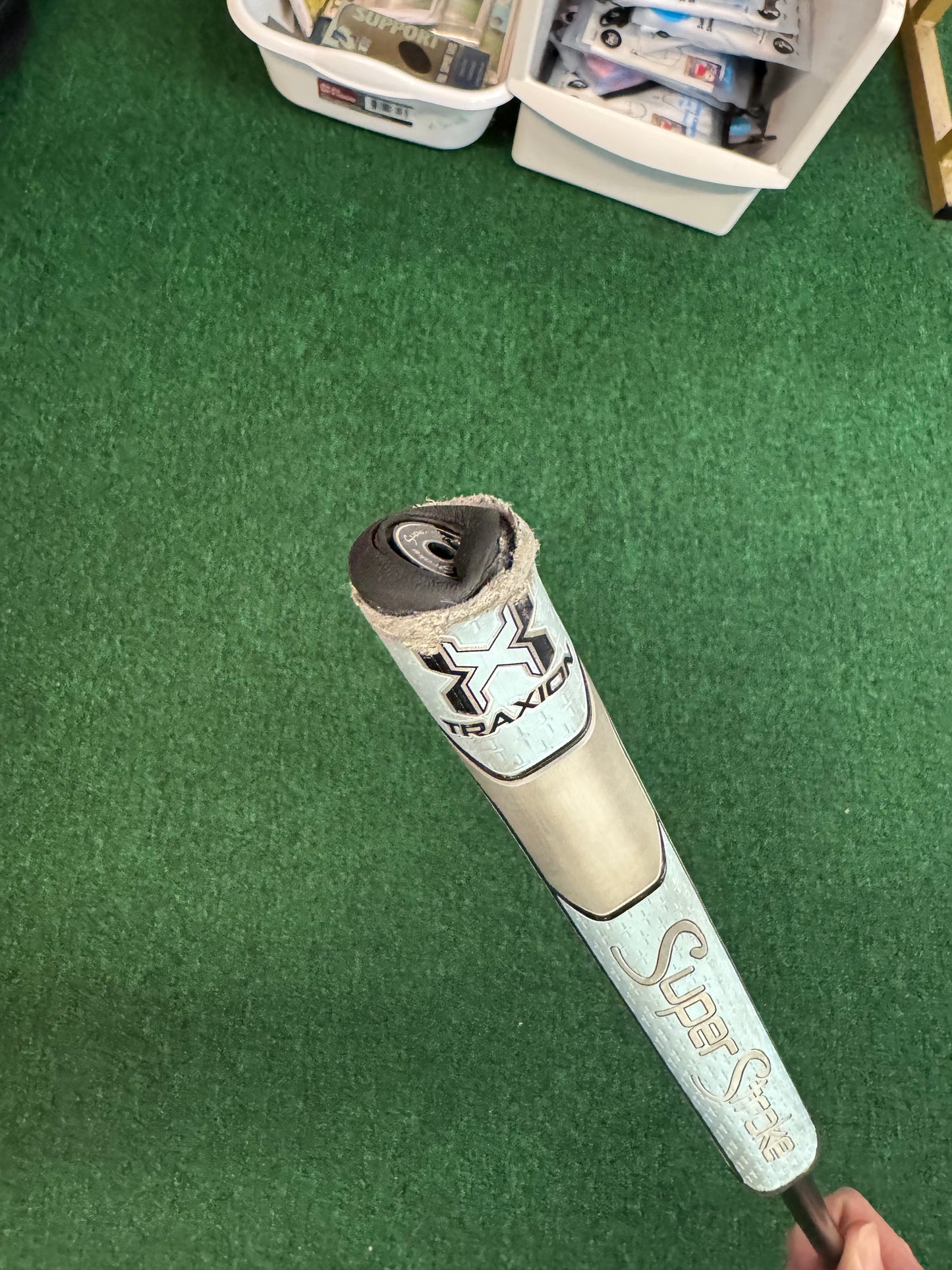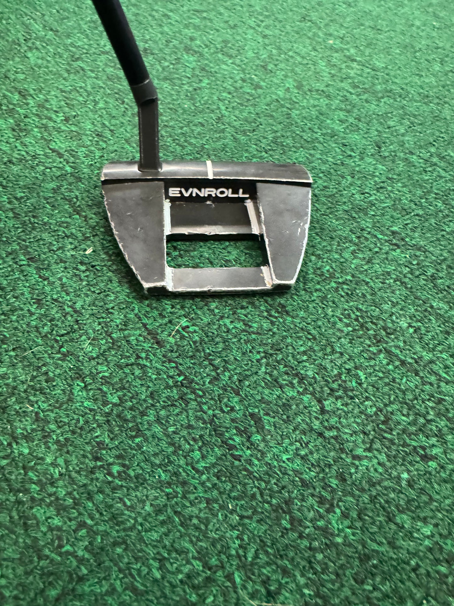 34.5" Evnroll 5.3 Putter. Okay condition. It's got normal wear and tear on the head with slight wear marks to the paint. SuperStroke Tour 2.0 Carolina Blue Grip. The butt end of the grip has been smashed in a little bit. This should not have damaged the shaft at all, just the grip only. *No Headcover*